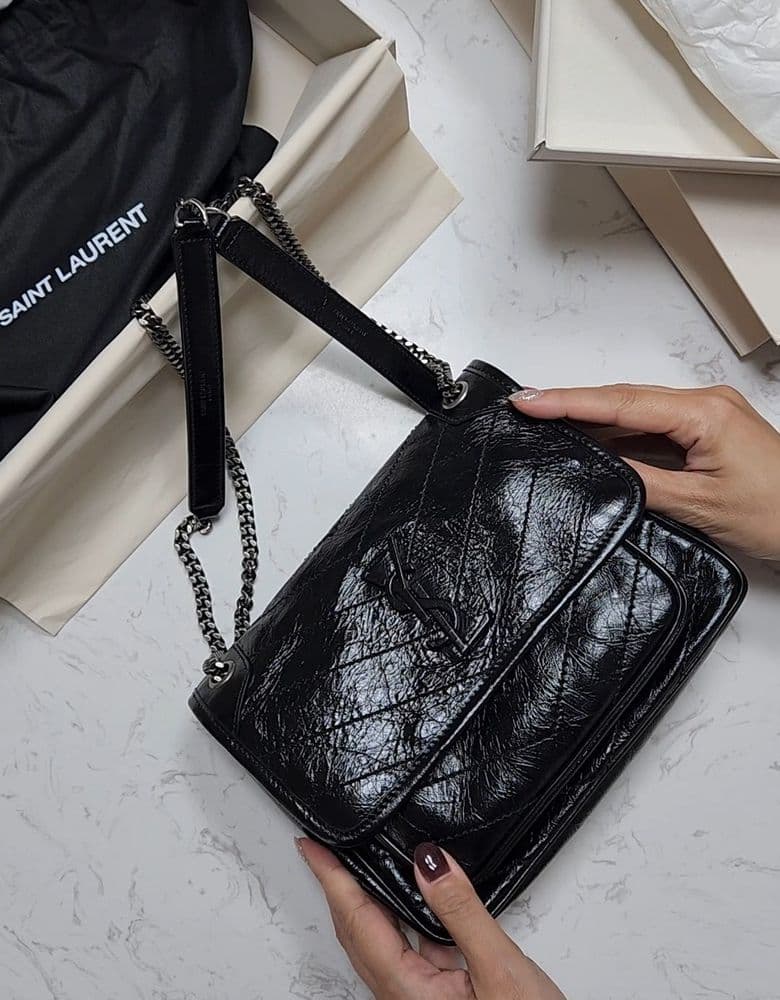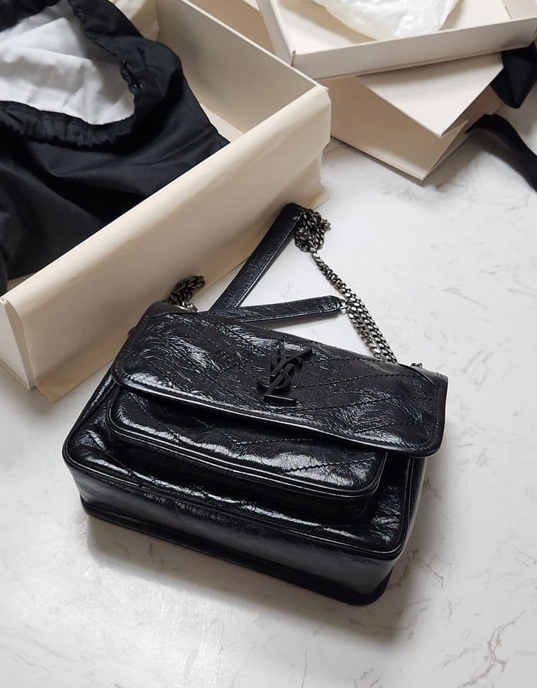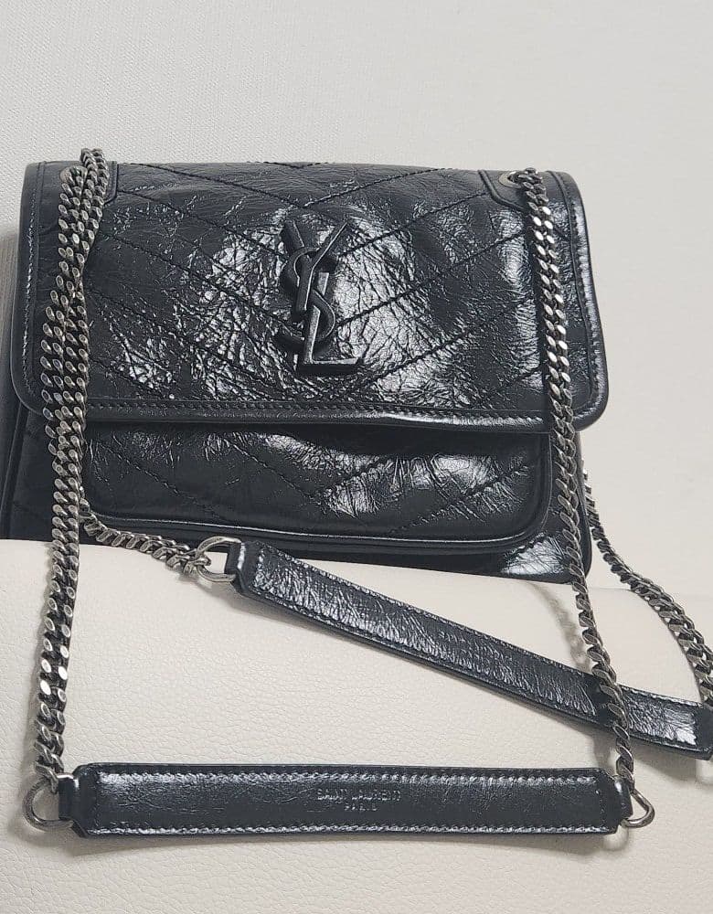 ⭐️ ⭐️ ⭐️ ⭐️ ⭐️ <구매일&방문일/장소/가격> 2024.10월초/대구롯백/3980000 +7%상품권 사은 <리뷰> 엄마랑 같이 쓰려고 산 가방인데...사실 첨엔 이런걸 왜사지했던거 반성합니다😂😂 직접들어보니까 데일리로 최고예요 가볍고 캐주얼에 걸치면 넘 예쁘고! 그리고 Baby사이즈인데 수납력까지좋아요. (보조배터리+휴대폰+지갑+핸드크림 완전 가능!) 단점은...가죽이 좀 약한느낌? 보조배터리처럼 무거운거넣으면 밑에 가죽늘어날까봐 좀 쫄리긴..?해요🥲🥲 생로랑 쇼핑백이랑 박스색이 화이트로 변했더라구요..? 나름 신선하고 예쁘긴한데...생로랑은 블랙이지ㅜㅜ 홈페이지사진보단 생각보다 반딱반딱한 느낌..? 송아지가죽이고 앞에 포켓이 하나있는데 얘가 참 유용하게쓰는중! 옷이 까매서 잘 안보이긴하는데 시크한듯...예쁨☆ 저한텐 좀 짧아서 크로스는 별로였지만ㅜ 숄더백 좋아하는 사람이라 좋아요... d=(^o^)=b