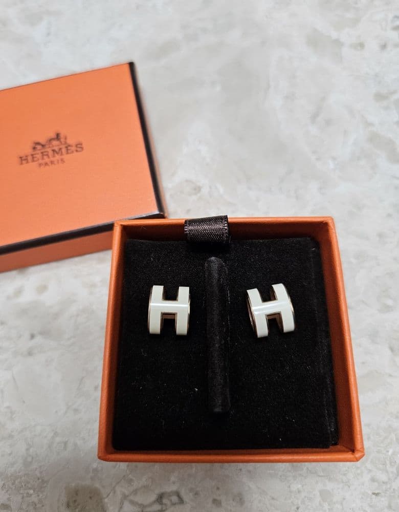 에르메스 팝아슈 화이트 로즈골드 귀걸이