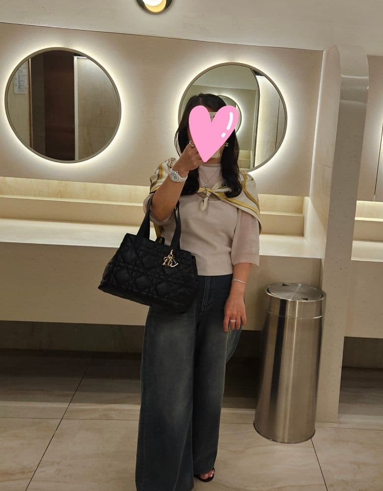 ⭐️ ⭐️ ⭐️ ⭐️ 장점 : 디올의 시그니처 까나쥬패턴과 DIOR참이 있어서 왠지 레이디는 아니지만 레이디 갖고픈 마음을 대리만족 시켜주는 아이템 + 넓은 수납공간으로 레이디디올의 아쉬움을 잡았다. 참고로, 세트인 파우치도 깨알 쓸모있음. 게다가 큰 백은 아무래도 이리저리 치여서 금방 때땀오는데 블랙이라 신경 덜쓰인다. 또하나 꼽자면, 레이디 너무 갖고픈데 어느새 가격 두배가 되어버려 부담스럽고 왠지 포멀한 옷에만 들게 될것같아 또 망설이다 보니 계속 2순위로 밀려났었는데 레이디대비 가격도 훌륭해서 망설임없이 살 수가 있다.👏 단점 : 무거운건 레이디와 매한가지😅 그리고 손잡이 불편한것도 매한가지🤣 셀러분은 손잡이 매번 고정시키기에 뻑뻑하면 그냥 구멍에 채우지않고 쓰라고하셨는데 짐이 없을땐 상관없지만 짐 많으면 짧게 해놔도 어느새 손잡이 길어져있....😂 둥근 손잡이 아닌 판판한 손잡이라 그립감이 좋지 않다. 또 가방이 통통해서 착붙 느낌은 아니다. <구매시기/구매장소/가격> 2024.01 롯데월드에비뉴엘 디올 530만원 <상품 리뷰> 전반적인 리뷰는 장단점에서 썼는데 착붙이 안되고 손잡이 그립감때문에 별하나는 뺐어요~ 근데 책 이외의 이것저것 넣기에는 좋은가방이고 저는 오늘 어깨에 까레를 둘러서 그렇지만 평상시는 숄더로 자주하고 다녀요. 제 키 157인데 미듐 사이즈 나쁘지않죠~? 저보다 키 크신분들 스몰 많이 하시던데 미듐이 수납도 넉넉하고(지금같은 날씨 가디건이나 얇은 점퍼 넣기도, 스카프 넣기도 좋아요😊) 개인적인 생각으로 스몰보다 미듐이 더 멋스럽다고 생각되어 저는 작은키에도 불구하고 미듐했답니다. 이제 추워지니 잘 들고다니려구요^^